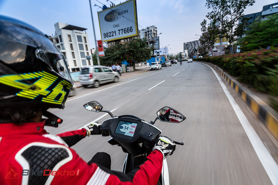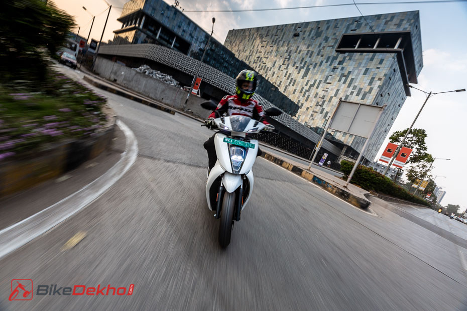 The middle-of-the-road ‘Ride’ mode still offers perfectly acceptable performance within the city, with acceleration nearly as zippy as Sport mode, but top speed limited to a more range-friendly 60kmph. Eco mode results in noticeably slower pick-up, with the speedo only reading as high as 50kmph. Throttle response feels duller too, but all this is the price you pay for that extra range.