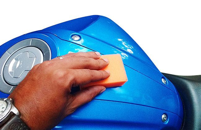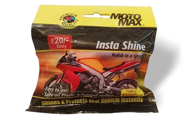The sponge has been infused with a polish mixture. So once you’ve washed and wiped your motorcycle down and the surfaces are clean, all you have to do to add that layer of polish is to rub the sponge lightly over the surfaces you wish to polish. The infused mixture inside the sponge cleans and lays a layer of polish on the applied surface, leaving your motorcycle looking brand new with a shiny gloss look. It’s a pretty tiny package and costs just Rs. 20. Now that’s not bad for that price and it worked pretty well when we tried it out.