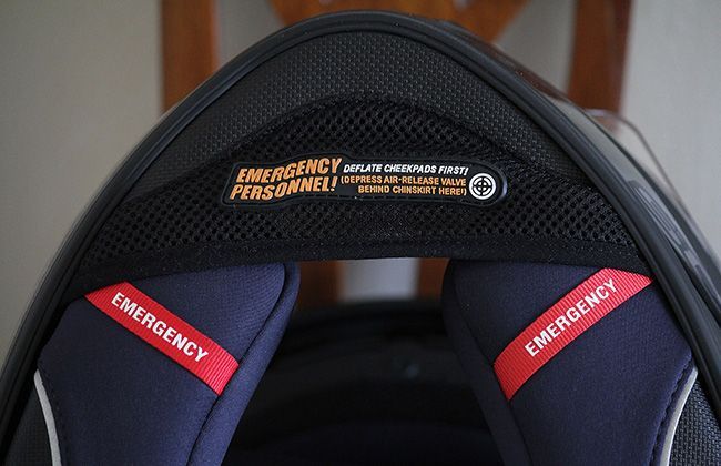 Tabs located under the neck roll allow easy removal of the cheek pads by trained emergency medical personnel.