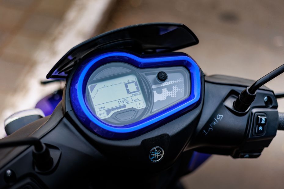 The Yamaha RayZR 125 has a unique and bold design, different from what we get to see on any other scooter. At the front, it gets a small flyscreen, a sporty-looking LED headlight with a ‘Y’ shaped DRL and motorcycle-like indicators. The headlight is surrounded by two fake air intakes that look like motorcycle tank extensions. At the rear, it gets a boxy tail section with an edgy tail light. The Street Rally variant adds hand guards, brushed metal finishes, and off-road-style block-pattern tyres for a distinctive look. The RayZR 125 also has a MotoGP edition that features a Yamaha Monster Energy paint scheme.