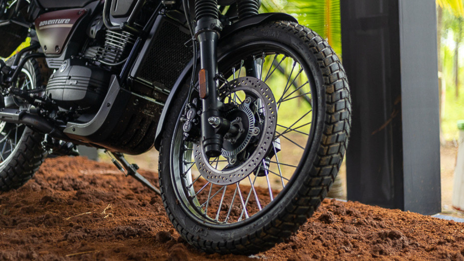 The 2025 Yezdi Adventure is the only bike in the 250-300cc ADV segment with spoke wheels